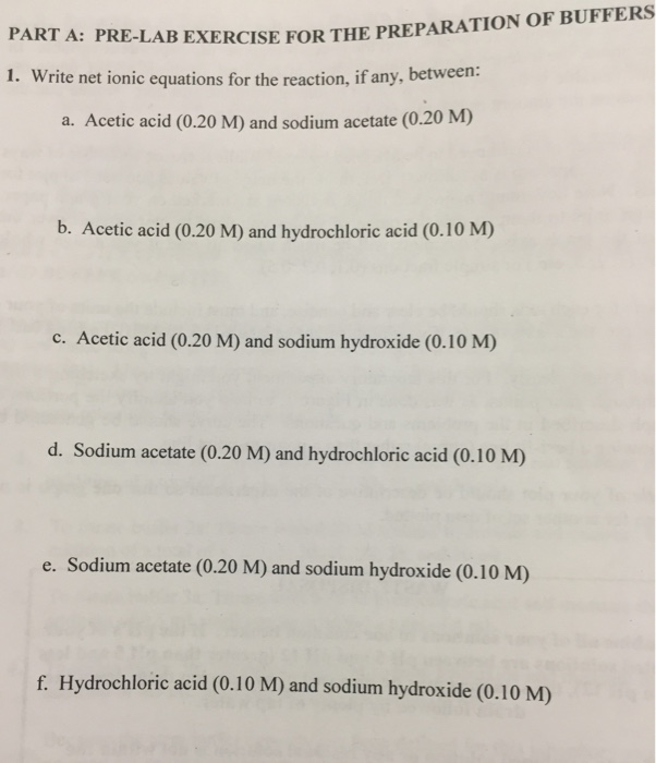 Solved 2 Sodium Acetate A Hydrochloric Acid Aq Chegg Com